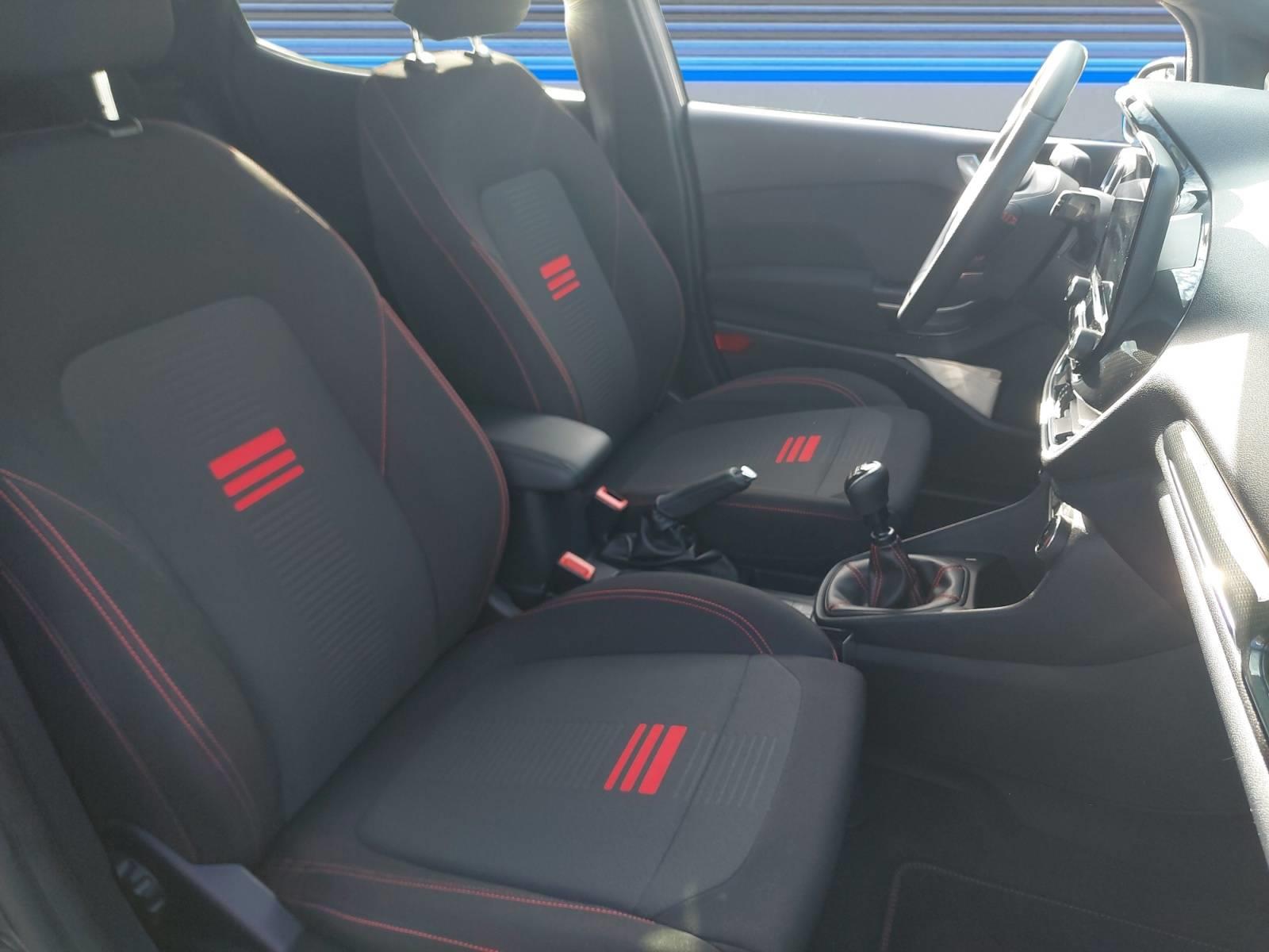 | Sellerie Tissu Noir Eton avec renforts latéraux Eton et surpiqûres rouges |